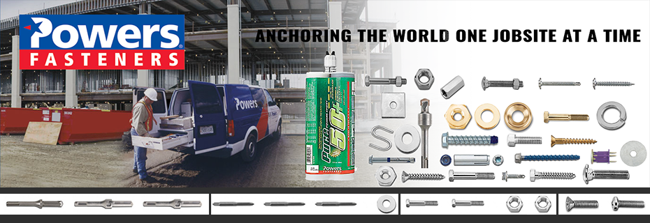 We are proud to carry Powers Fasteners and their Power-Bolts, Power-Studs, Lok-Bolts, Set-Bolts, Wedge-Bolts, Tappers, Dropins, Epoxy, and much more.